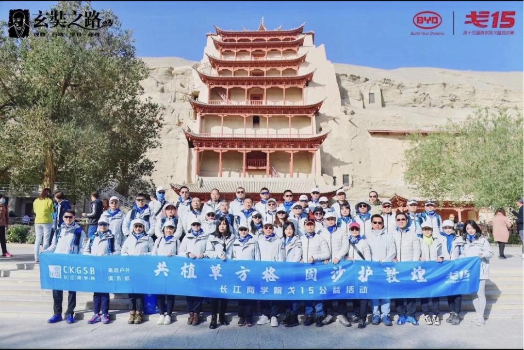 自今年起,北京市戈友公益援助基金会携手敦煌研究院文化弘扬部,针对三危山防风治沙工程开展合作。号召商学院戈友与社会爱心人士一起,从植草方格开始,保护莫高窟不惧风沙侵袭,保护敦煌文化渊源流长。目前已有长江、中欧两家商学院参与莫高窟草方格种植的活动。